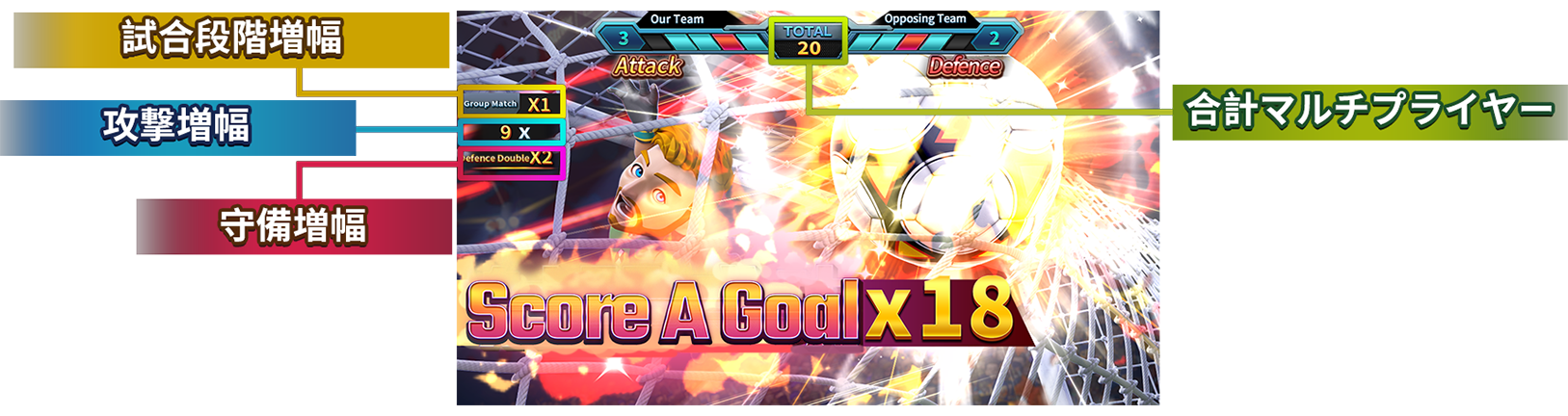 3.攻撃増幅:自チームが攻撃側の場合、シュート時にランダムなマルチプライヤーが与えられます。