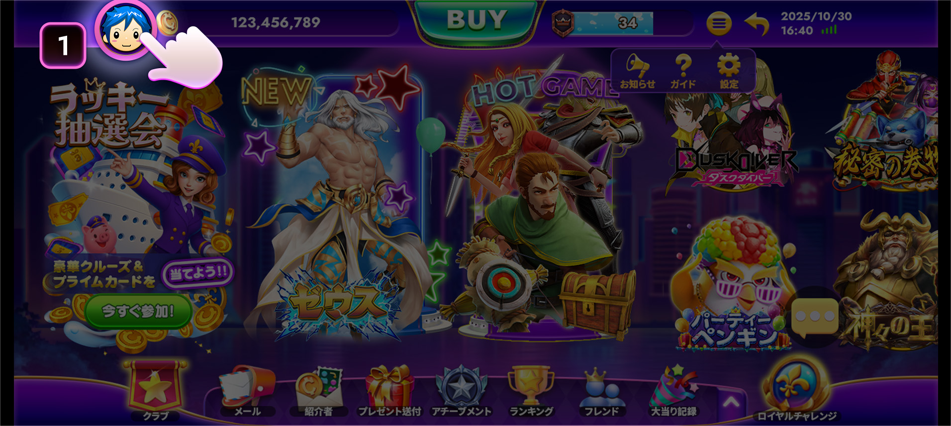 VIPレベルとメダル数は、簡単な操作ですぐに確認できます。