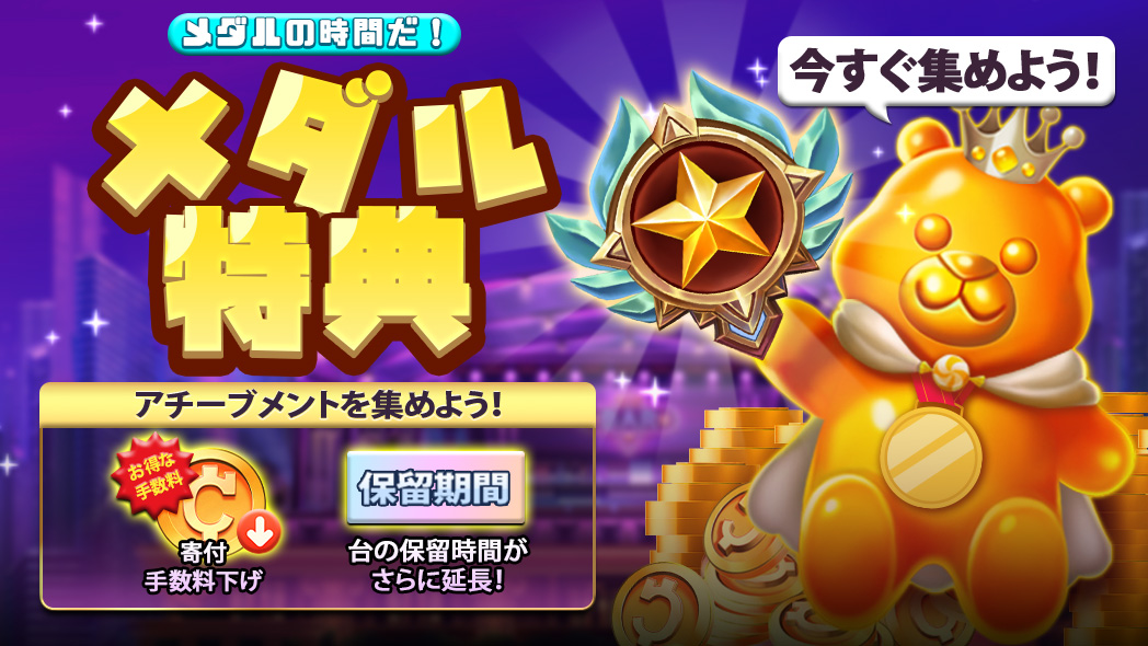 VIPレベルとメダル数を上げると、限定特典や機能をご利用いただけます。